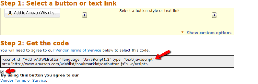 Once you’re happy with your button’s configuration, check the box to agree to Amazon’s terms of service and copy your button code: