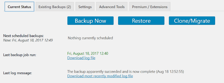 For a walkthrough of UpdraftPlus, see the article The Ultimate Guide to UpdraftPlus: How to Backup, Restore, or Migrate Your WordPress Website here at Elegant Themes’ blog.