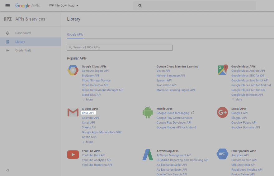 Here, click on Drive API. Alternately you can search for it and click on it when it comes up.