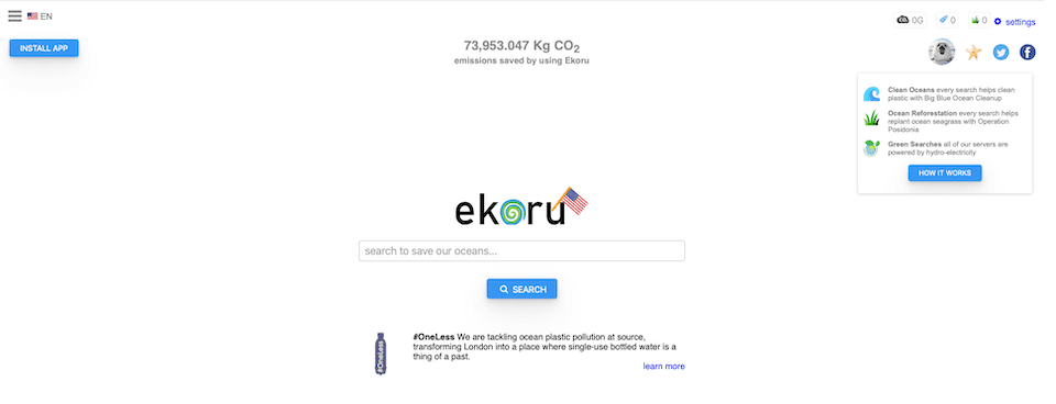Search engines have a carbon footprint, and Ecosia’s answer is its CO2-neutral alternative to Google. For every search, 80% of the profit goes toward planting trees. Approximately 45 to 50 searches will plant one tree — which isn’t a lot of searches if you think of your regular daily or weekly activity.