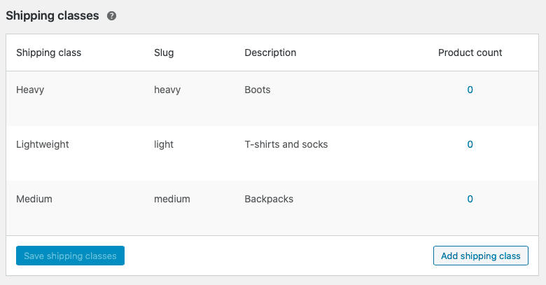 Creating WooCommerce shipping classes is helpful if your shop has items of different weights and if your customers usually buy one product at a time. For example:
