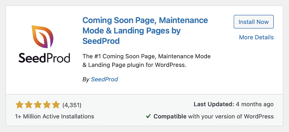 What’s nice about this plugin (and many others) is that you activate WordPress maintenance mode manually. As long as you’ve told SeedProd what to use as your maintenance mode page, that’s what will show when you manually activate it.
