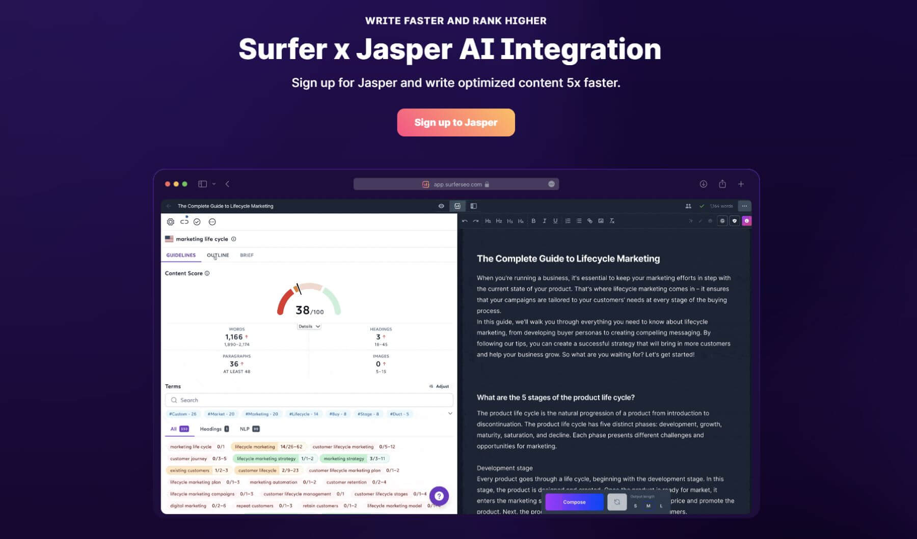 With the rise of artificial intelligence (AI), many AI SEO tools are becoming more mainstream. Some of the best AI SEO tools are now using AI to help with the entire SEO content creation process. AI writing software like Jasper AI can help you generate content in seconds using simple text prompts, and SurferSEO can optimize your content for search engines. Or you can use both with an integration.