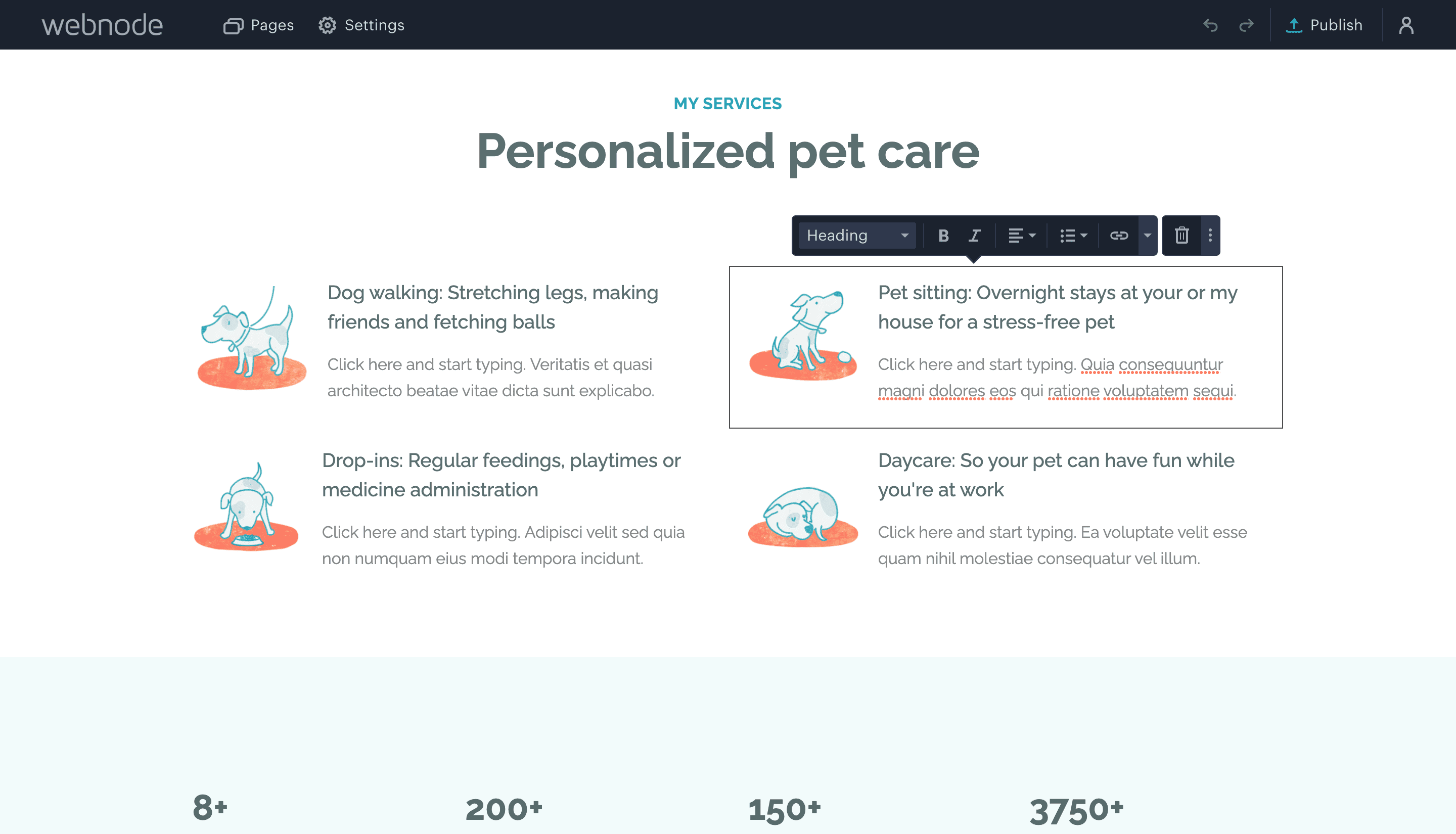 With that in mind, Webnode is amazing for making pages that will work as static content and for product pages for your ecommerce site. But if you’re looking to create regular content such as blogs or feature stories, you might not find what you’re looking for here.