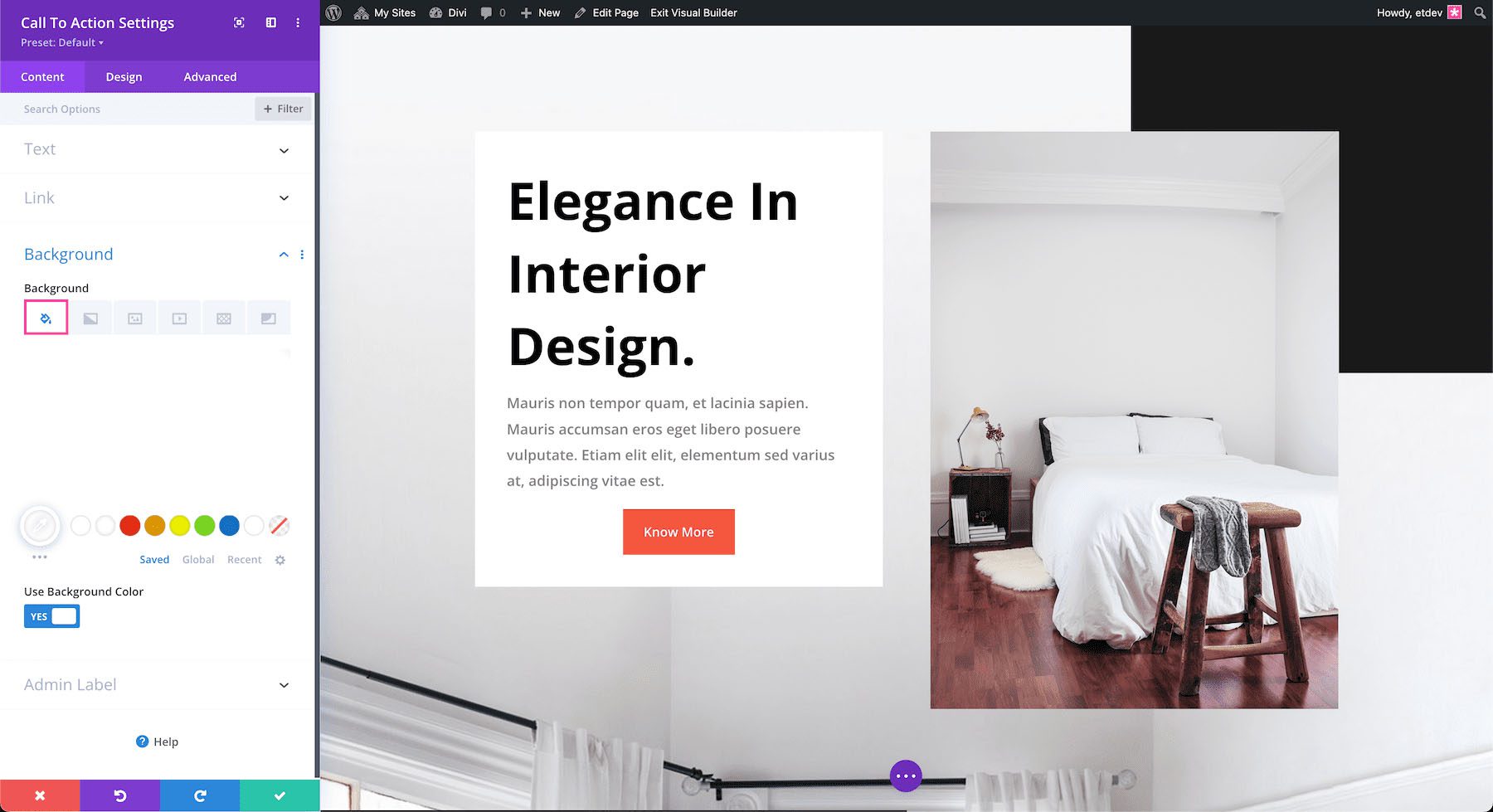 Inside this tab, you’ll find all the design styles and options for the Divi Call To Action module.