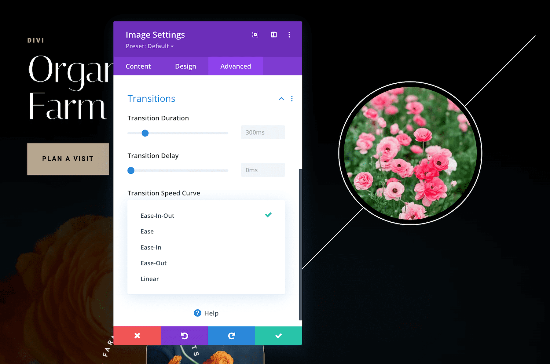 The Divi Transition Options allow you to control the transition duration, delay, and speed curve of any hover animations you have applied to an element. This gives you even more control over how your hover animations animate on your page. In this doc, we’ll go over how to access transition options, how to use them, and more resources on the topic.